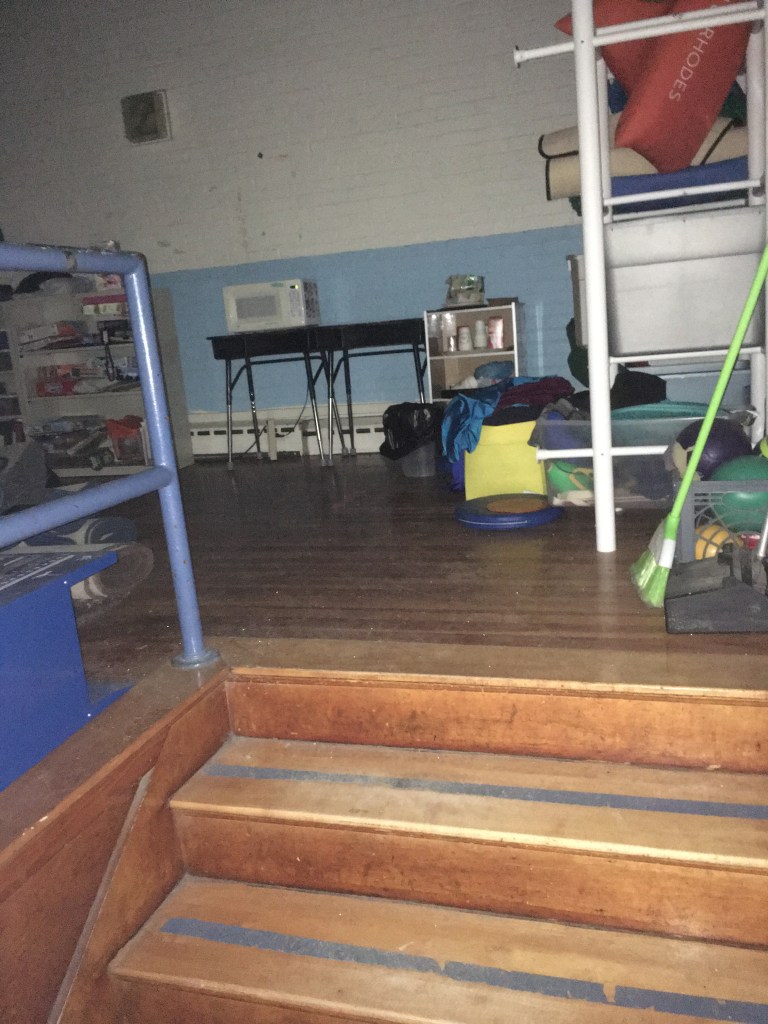 The old stage used for OT and PT therapy is only accessible via stairs. The very space that is, by default, being used by students with special needs is not ADA compliant.