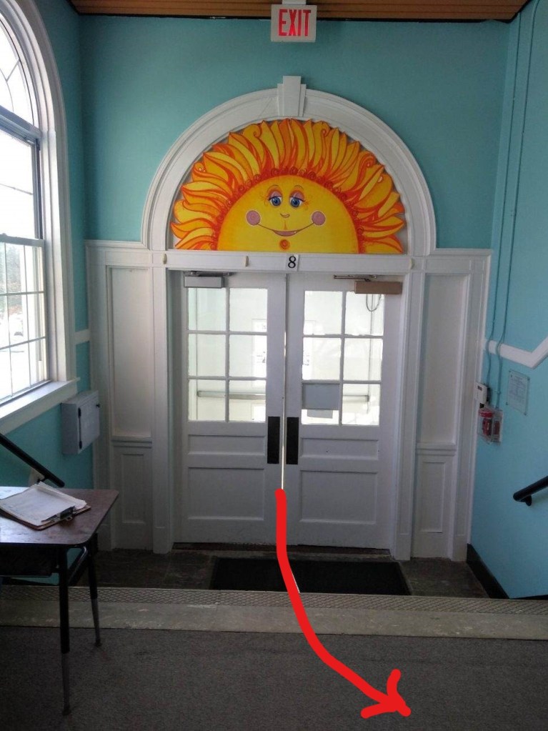 Visitors to Shawsheen gain admittance to the building via an intercom system and must proceed up a series of stairs to the Main Office.
